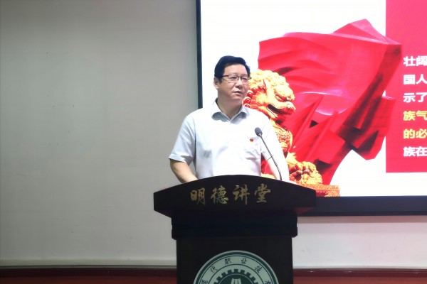 在陈飞书记和聂萍老师的课堂上,聂萍带领同学们回溯了抗战的艰苦历程,感悟伟大的抗战精神,陈飞结合国际形势分析了本次阅兵式的重大意义,号召同学们从抗战精神中汲取智慧和能量,铭记历史,坚定理想信念,为民族复兴贡献“现代人”的力量。